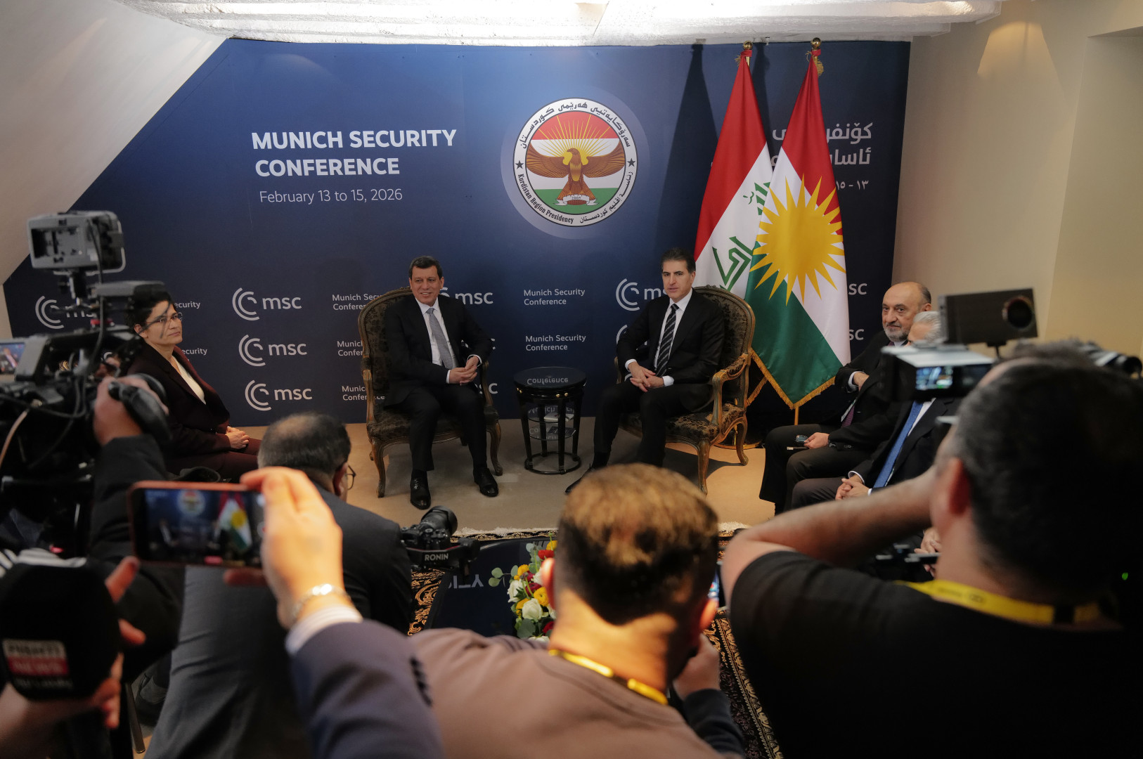 Piştî nîvroya îro Yekşem, 15/02/2026, li Konferansa Ewlekariyê ya Mûnîhê, rêzdar Nêçîrvan Barzanî, Serokê Herêma Kurdistanê, di civînekê de ligel birêz Mazlûm Ebdî, dawîtirîn geşepêdanên siyasî û ewlehiyê yên Sûriyeyê û herêmê û rewşa Kurd û pêkhatên wan li Sûriyeyê gotûbêj kirin.