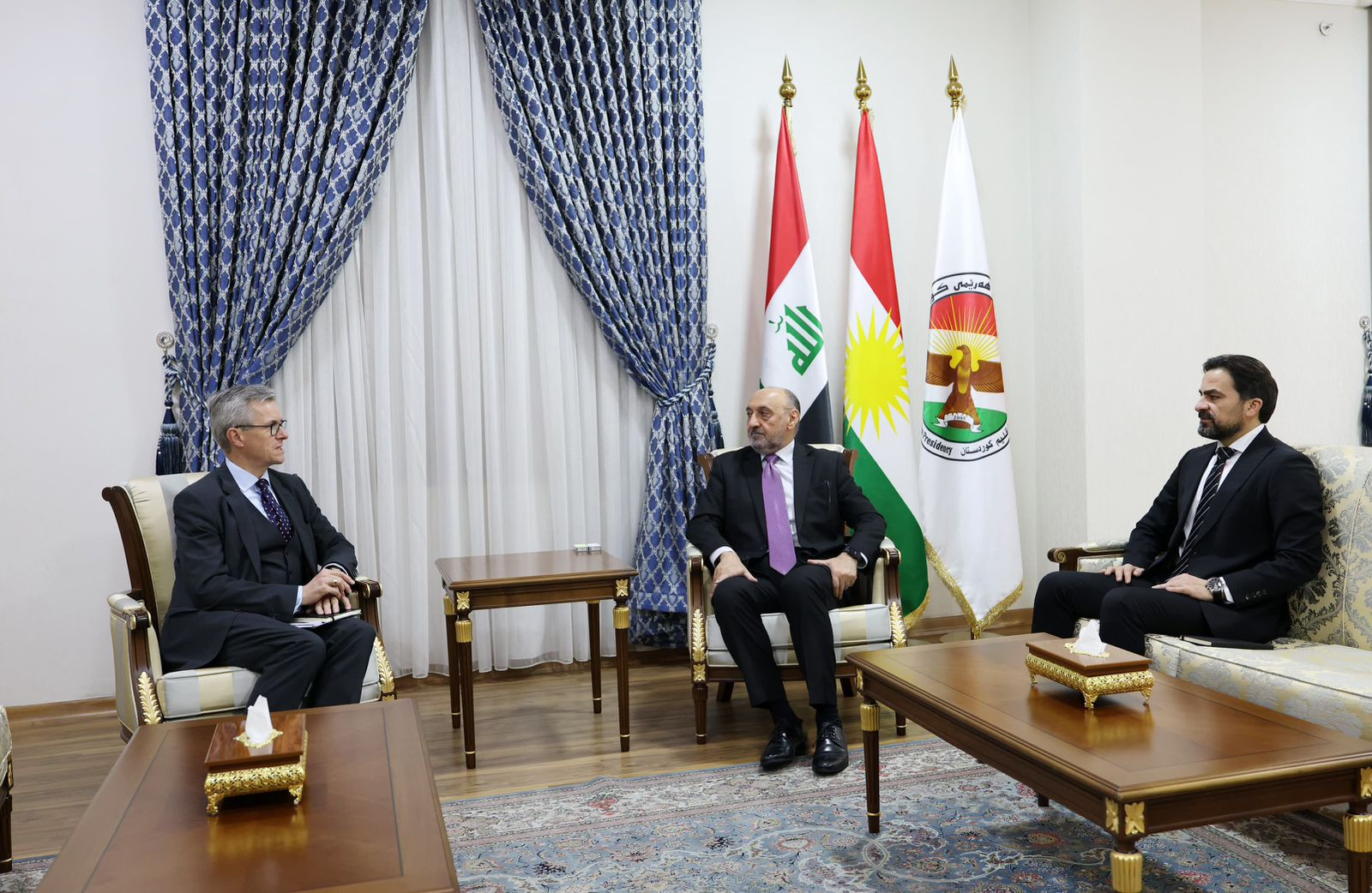 ئەمڕۆ سێشەممە 2026/2/3 بەڕێز فەوزی هەریری، سەرۆکی دیوانی سەرۆکایەتیی هەرێمی کوردستان، پێشوازیی لە بەڕێز ئالبرێشت فۆن ڤيتكه، كونسوڵى گشتیی ئهڵمانيا لە هەرێمی کوردستان، کرد.
