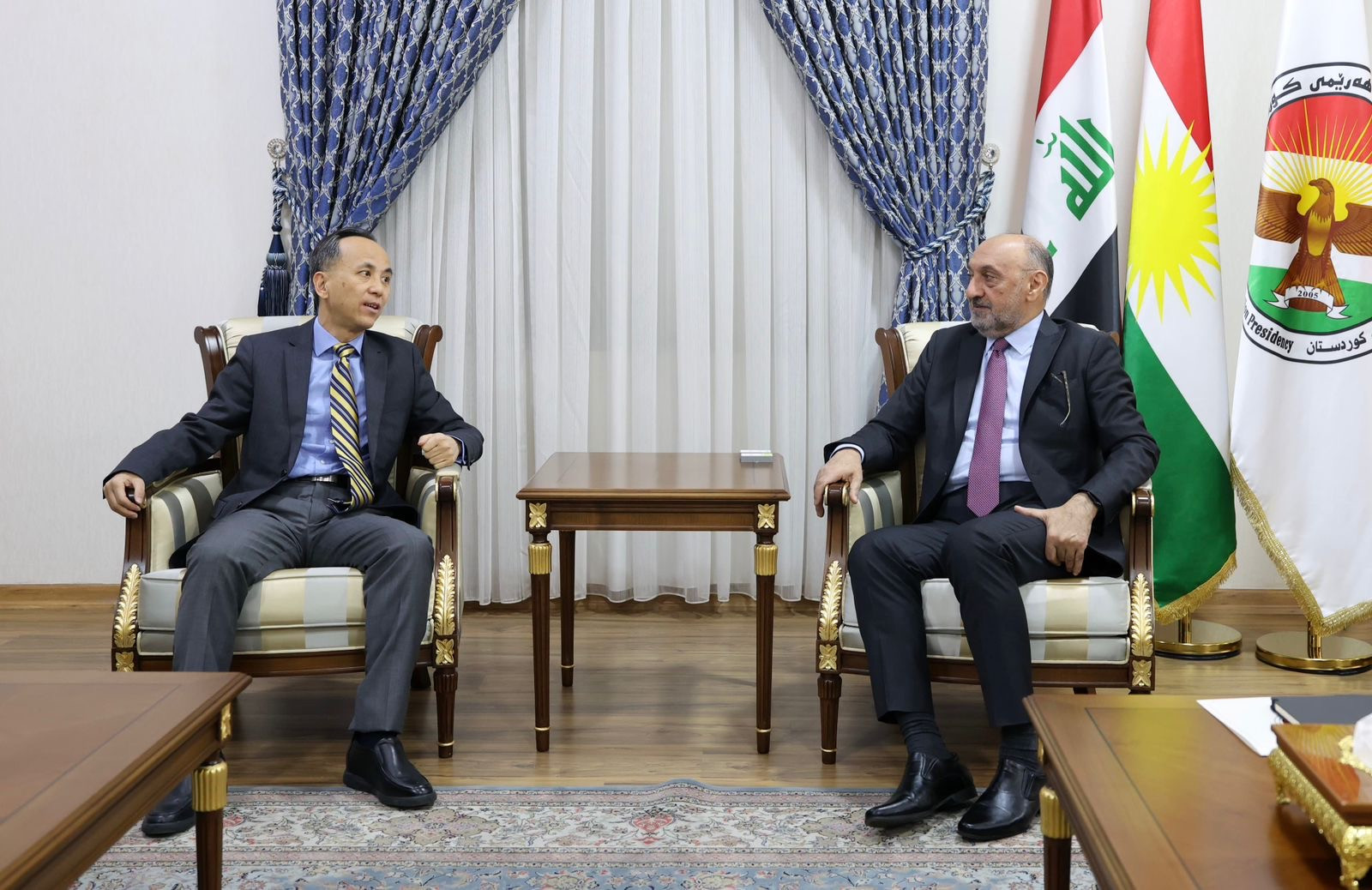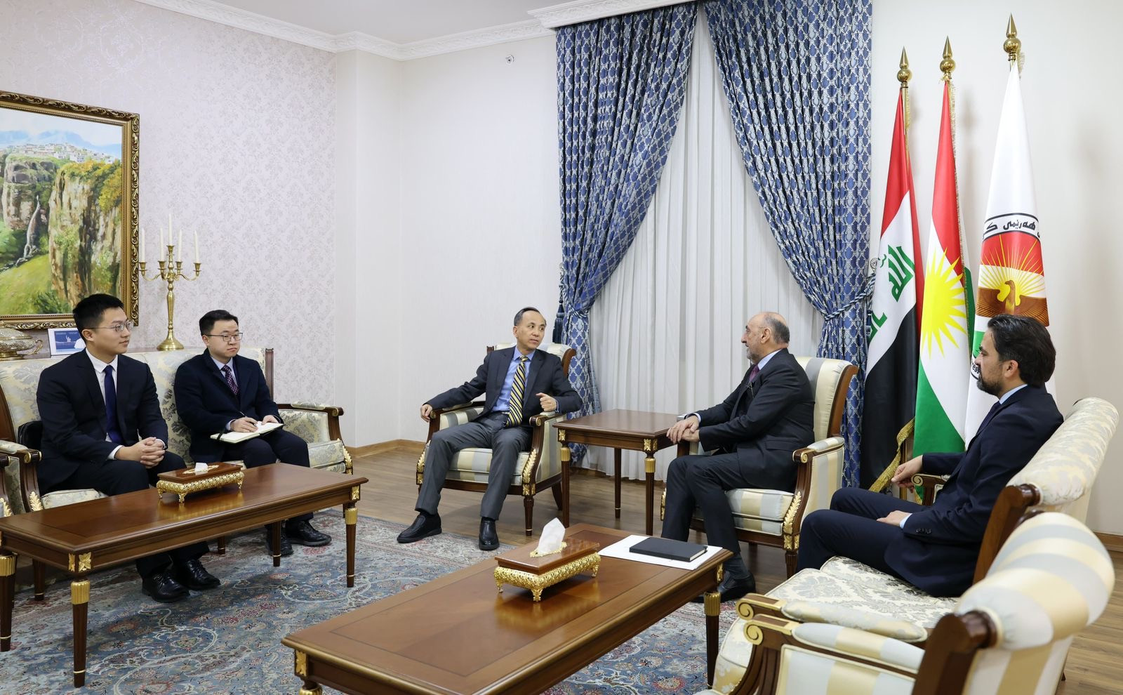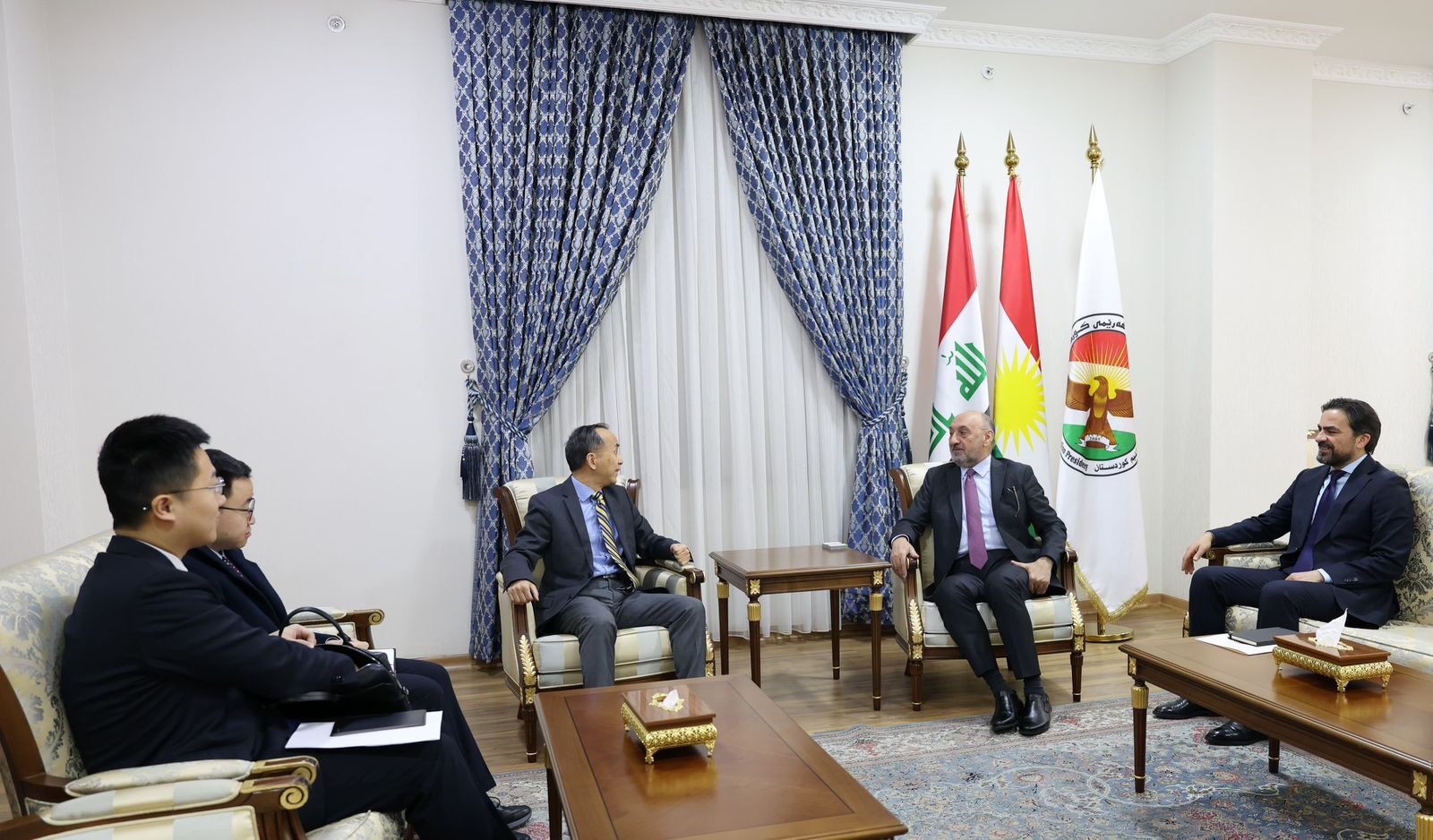 ئەمڕۆ پێنجشەممە 2026/1/22 بەڕێز فەوزی هەریری، سەرۆکی دیوانی سەرۆکایەتیی هەرێمی کوردستان، پێشوازیی لە بەڕێز لیو جون، كونسوڵی گشتیی كۆماری میللیی چین لە هەرێمی کوردستان و شاندێکی یاوەری، کرد.