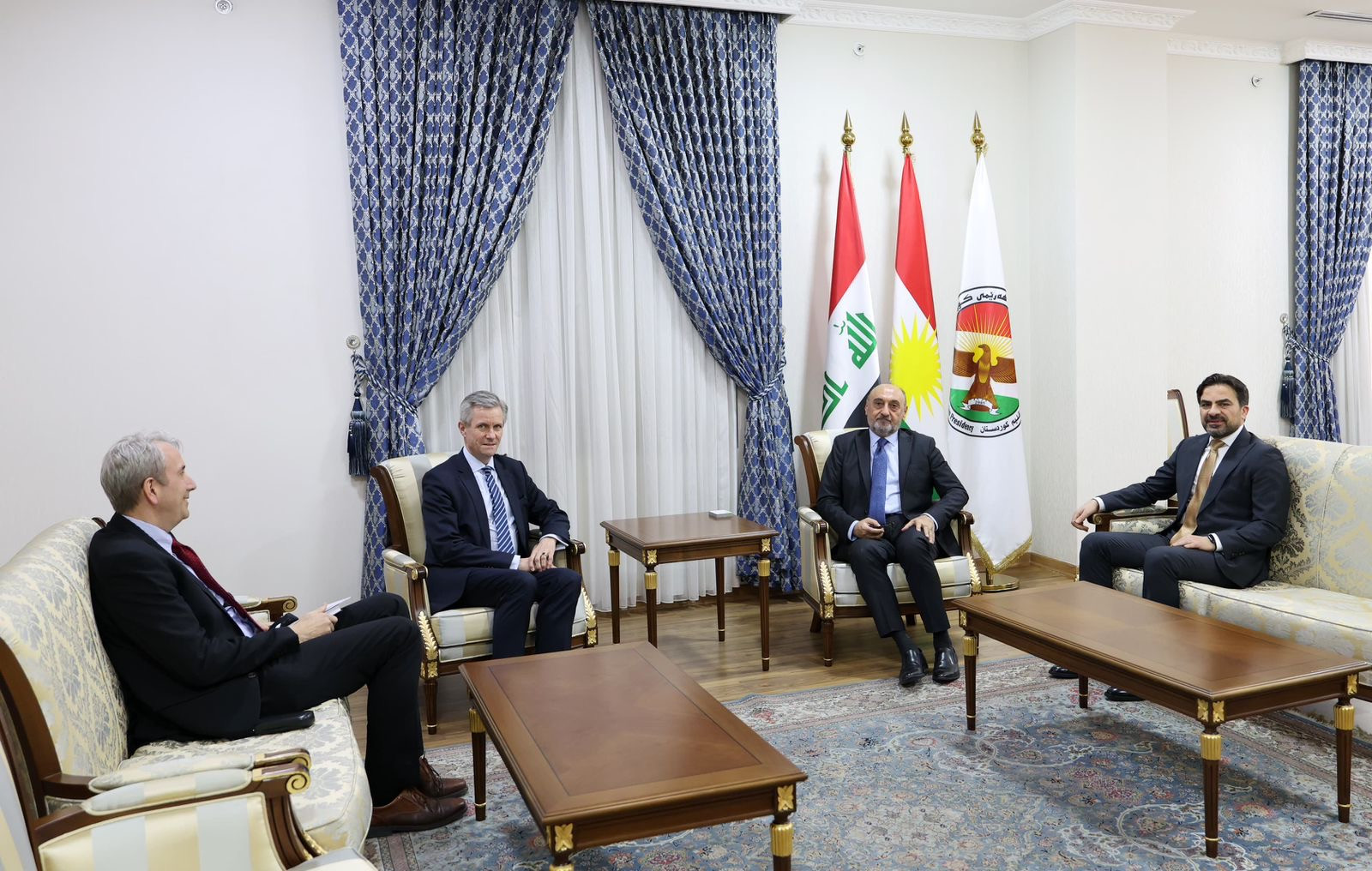 ئەمڕۆ پێنجشەممە 2026/2/19 بەڕێز فەوزی هەریری، سەرۆکی دیوانی سەرۆکایەتیی هەرێمی کوردستان، پێشوازیی لە بەڕێز ئالبرێشت فۆن ڤيتكه، كونسوڵى گشتیی ئهڵمانيا لە هەرێمی کوردستان، کرد. لە دیدارێکدا کە بەڕێز نیاز ساڵح، سەرۆکی فەرمانگەی کاروباری دەرەوە و دیپلۆماسی لە سەرۆکایەتی، ئامادەی بوو، چەند تەوەرێکی پەیوەندیدار بە دۆخی هەنووکەییی ناوخۆ، عێراق و ناوچەکە، خرانە بەر باس.