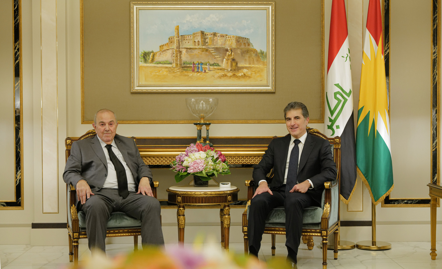 ئێوارهى ئهمڕۆ دووشهممه 2025/11/24 بهڕێز نێچيرڤان بارزانی، سهرۆكى ههرێمى كوردستان، لهگهڵ بەڕێز دکتۆر ئەیاد عەللاوی، سەرۆکی بزووتنەوەی ویفاقی نیشتمانیی عێراقی و شاندێکی یاوەری، كۆبووهوه.