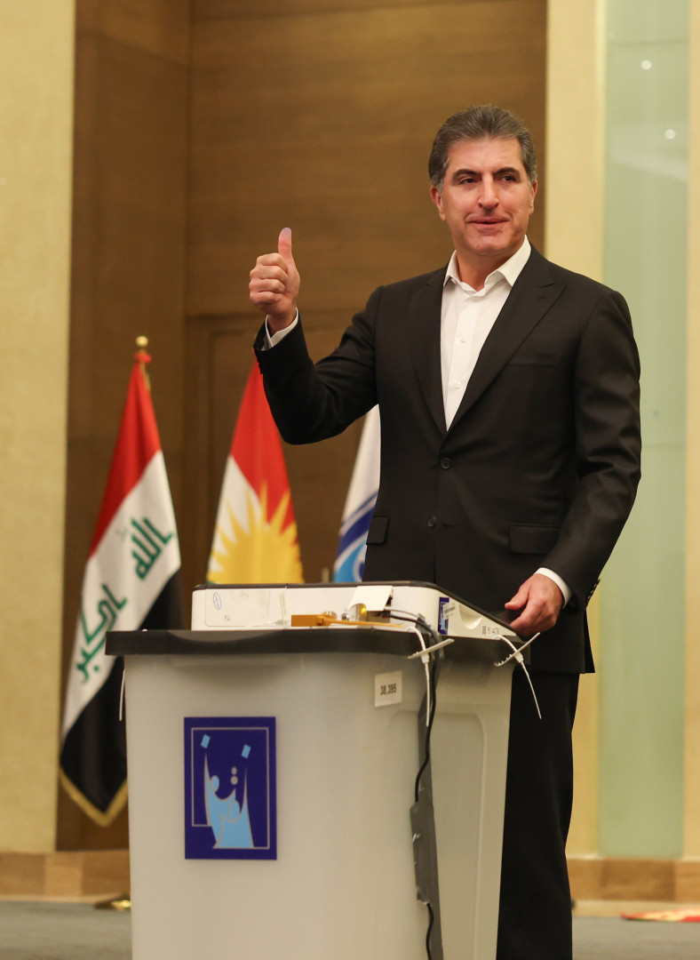سهرلهبهيانيى زووى ئهمڕۆ سێشهممه 2025/11/11 بهڕێز نێچيرڤان بارزانى، سهرۆكى ههرێمى كوردستان، لهگهڵ يهكهم دهستپێكردنى پرۆسهى دهنگدان، له بنكهيهكى ههولێر دهنگى دا. دواتر لێدوانێكى بۆ ڕۆژنامهنووسان دا و وهڵامى چهند پرسيارێكى ئهوانى دايهوه، ئهمه دهقهكهيهتى: