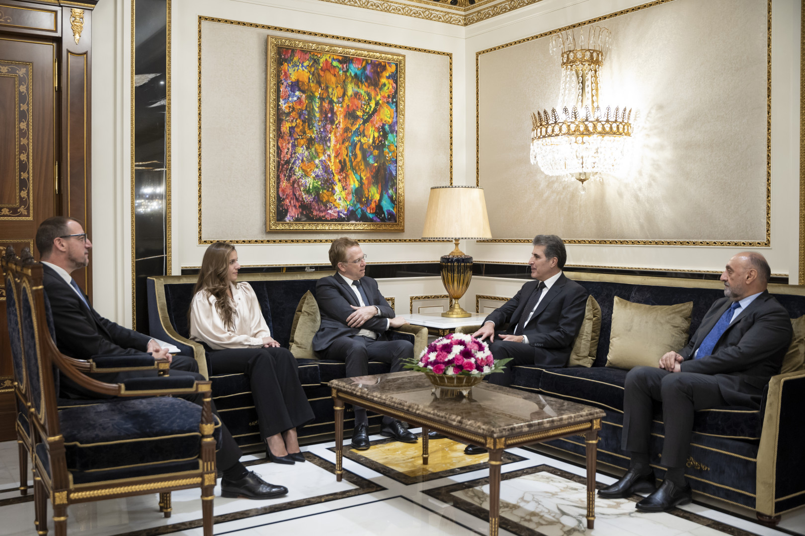ئێوارەی ئەمڕۆ چوارشەممە، 2025/11/26 بەڕێز نێچیرڤان بارزانی، سەرۆکی هەرێمی کوردستان، پێشوازیی لە بەڕێز پاتریک دۆرێل، باڵیۆزی فەڕەنسا لە عێراق و شاندێکی یاوەری کرد.
