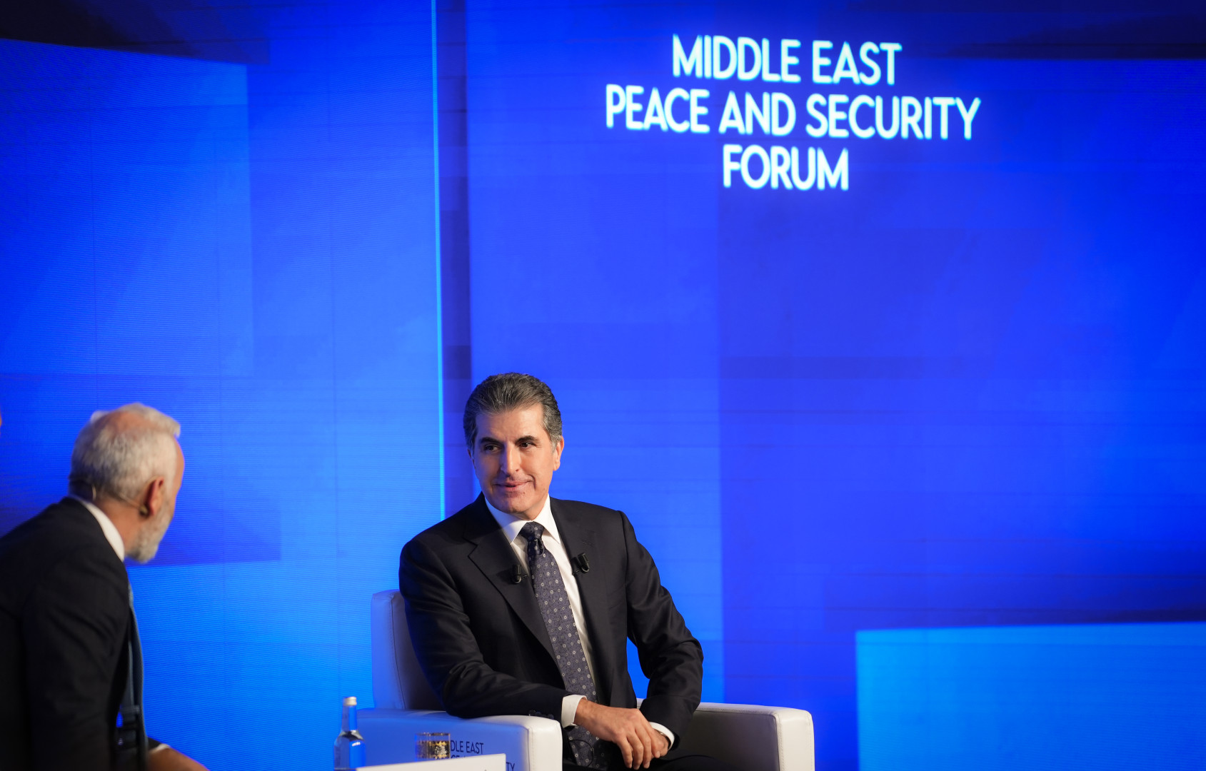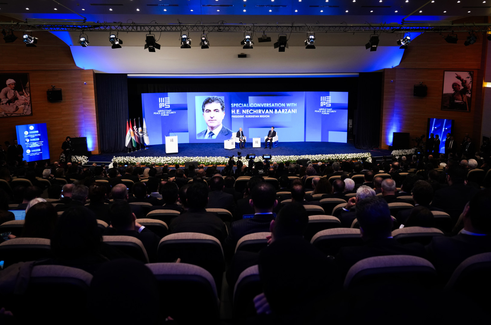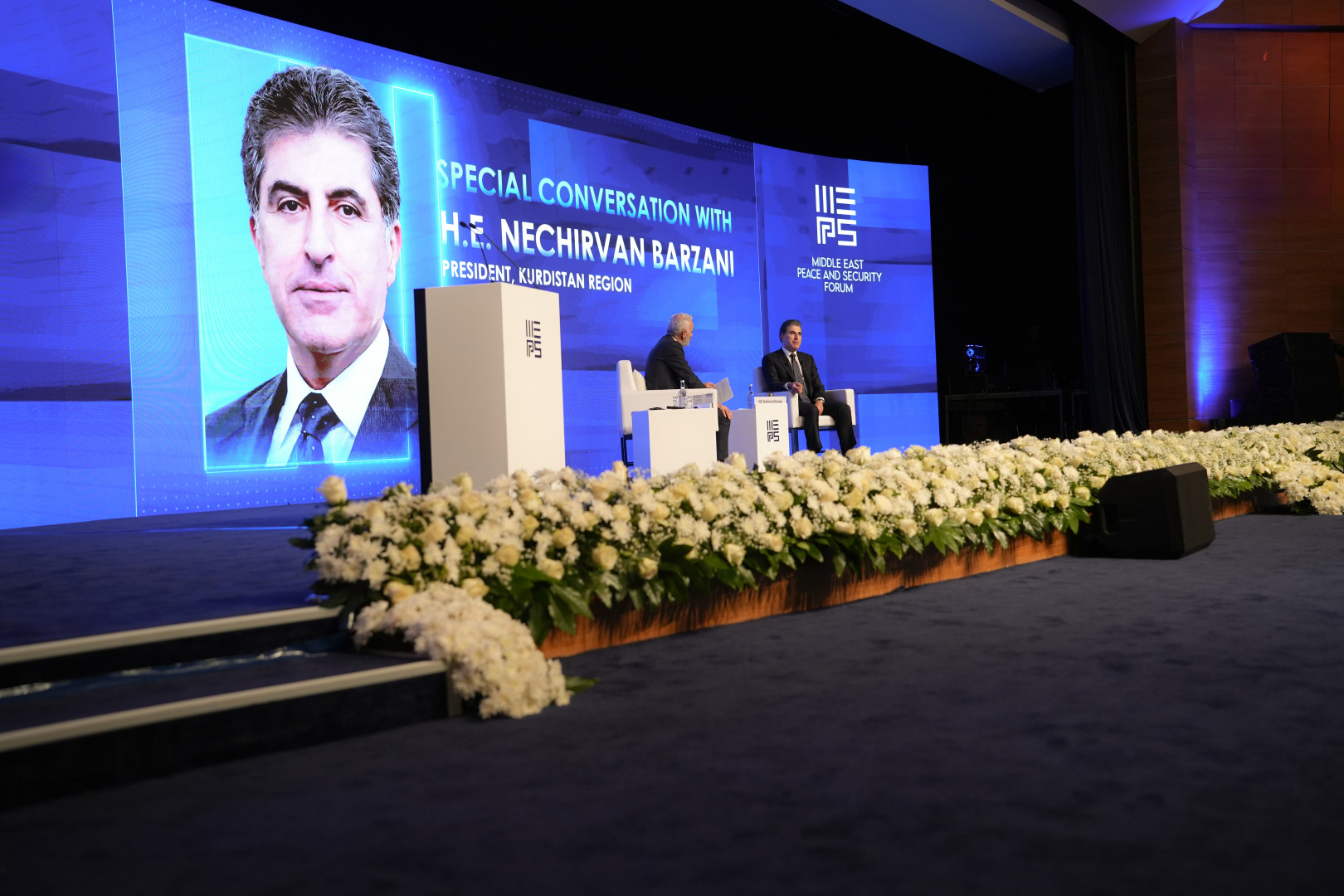 ئێوارهى ئهمڕۆ سێشهممه 2025/11/18 بهڕێز نێچيرڤان بارزانى، بهشداريى له كۆڕبهندى ئاشتى و ئاسايشى ڕۆژههڵاتى ناوهڕاست MEPSدا كرد كه ساڵانه لهلايهن زانكۆى ئهمهريكى كوردستانهوه له دهۆك ئهنجام دهدرێت.